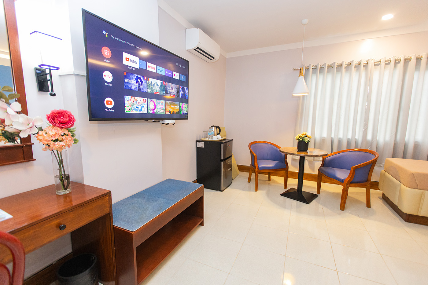 Largest Room perfect for family stay or group of friends, with 1 single +1 double large beds and living area . Book direct & enjoy Free breakfast for two, Hot kettle and coffee available along with basic toiletries. Refresh and relax in room with soft pillows, linen, Flat Screen Cable TV, Wi-Fi, private bathroom, closet, desk, full length mirrors and telephone.